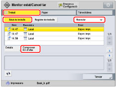 Si premeu [Treball] → [Registre de treballs] → seleccioneu [Rebre] a la llista desplegable, també es mostra [Comprovar RX d'I-fax]. |