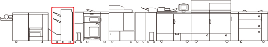 Aquesta secció descriu com eliminar un encallament de paper que es produeixi a la unitat de grapat de quaderns de la Saddle Finisher-AN. La ubicació de la Saddle Finisher-AN s'indica a la il·lustració següent.
