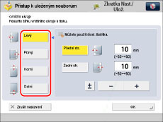 Stiskněte [Přední strana] nebo [Zadní strana] → stisknutím [-] nebo [+] nastavte šířku vnitřního okraje → stiskněte [OK].