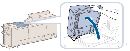 Tento stroj je vybaven čidlem indikujícím otevření/zavření krytu podavače (viz zakroužkovaná oblast na výše uvedeném obrázku). Při ukládání originálů na kopírovací desku zvedněte podavač do výšky přibližně 300 mm, aby čidlo nebylo s podavačem v kontaktu. Pokud se čidlo nevzdálí od podavače, může se stát, že stroj velikost nerozpozná správně. |
