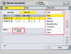 Stiskněte rozevírací seznam → vyberte požadované nastavení → stiskněte [Tisknout seznam].