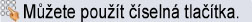 ![]() ![]() | Hodnoty můžete zadávat pomocí číselných tlačítek na displeji dotekového panelu nebo na ovládacím panelu. |