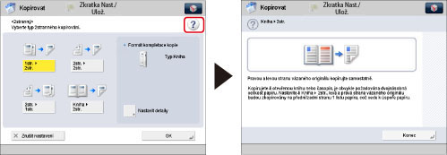 ![]() | Stiskněte toto tlačítko, chcete-li zkontrolovat nastavení a zavřít obrazovku. |