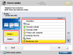 Stiskněte [Klávesová zkratka 1] nebo [Klávesová zkratka 2] → vyberte funkci, pro niž chcete zobrazit tlačítko přímého přístupu (klávesovou zkratku). Nechcete-li vybrat žádnou funkci, stiskněte [Nepřiděleno].