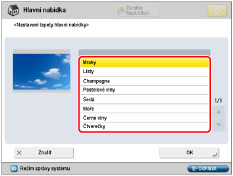 Pro obrazovku Hlavní nabídka si můžete vybrat tapetu.