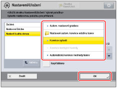 Vyberte nastavení volby Nastavení/Uložení, která chcete uložit → stiskněte [OK].