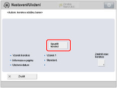 Jestliže není typ papíru, který chcete použít pro testovací stránku pro korekci, v seznamu na obrazovce s detailním nastavením, musíte typ papíru uložit do seznamu. Bližší informace o ukládání vlastního typu papíru viz v „Základní informace o této funkci.“ Když registrujete vlastní typ papíru jako vzorek korekce, je nastavení typu papíru chráněno a nemůžete změnit podrobnosti pro vlastní typ nebo vlastní typ smazat v [Nastavení správy typu papíru] v [Možnosti] (Nastavení/Uložení). |
