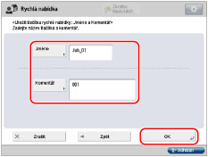 Stiskněte [Komentář] → zadejte komentář → stiskněte [OK].