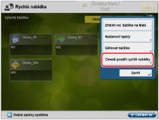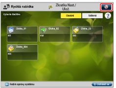 <Uložit sdílená tlačítka>: | Nastavíte-li položku <Uložit sdílená tlačítka> na [Zap], obecní uživatelé a neoprávnění uživatelé mohou ukládat, upravovat a mazat sdílené tlačítko nebo měnit velikost tlačítek a tapetu. |