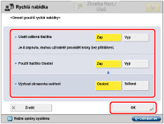 <Výchozí obrazovka ověření>: | Vyberte [Osobní] nebo [Sdílená] pro nastavení výchozí obrazovky, která se má zobrazit po ověření. |