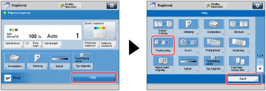 Chcete-li do podavače uložit různě velké originály, nastavte [Různě velké originály]. (Viz „Různě velké originály.“) Chcete-li jednostranné a oboustranné originály kopírovat oboustranně, pak je-li první originál jednostranný, nastavte [1str. 2str.], popřípadě [2str. 2str.] je-li oboustranný. Následně ručně nastavte nebo zrušte [2stranný originál] pro každou dávku skenovaných originálů. |