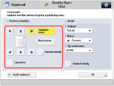 [Vertikální obraz]: | Stiskněte tuto volbu, ukládáte-li originály vertikálně. |