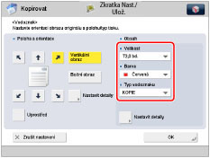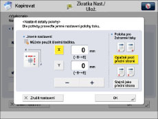 Chcete-li při oboustranném kopírování nastavit polohu tisku pro zadní stranu, vyberte [Opačně proti přední straně] nebo [Stejně jako přední strana] → stiskněte [OK].