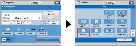 Může se stát, že tisk nebude optimální. Závisí to na obsahu originálu a kombinaci nastavení. Použijete-li [Vodoznak] společně s volbou [Přidat přebal] nebo [Vložit listy], čísla se na vložené stránky nevytisknou. |