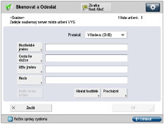 Pro [Hostitelské jméno] lze na ovládacím panelu zadat až 128 alfanumerických znaků. Pro [Cesta ke složce] lze zadat až 255 alfanumerických znaků. Zadejte nastavení serveru v rámci limitu znaků. Změníte-li jazyk displeje dotekového panelu, může se stát, že se [Hostitelské jméno] a [Cesta ke složce] nezobrazí správně nebo nebudete moci procházet adresáři. Jestliže se jazyk na displeji dotekového panelu liší od počítače používaného jako hlavní prohlížeč (master browser), může se stát, že se [Hostitelské jméno] a [Cesta ke složce] nezobrazí správně nebo nebudete moci procházet adresáři. |