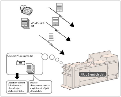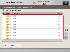 Do faxové/I-faxové schránky nelze ukládat žádné další soubory v níže popsaných případech. Uvedené hodnoty mohou být různé v závislosti na volné kapacitě pevného disku. Když je ve schránce a faxové/I-faxové schránce uloženo celkem 1500 souborů nebo obrazů. Když je ve schránce a faxové/I-faxové schránce uloženo celkem 6 000 stran souborů nebo obrazů. Když není k dispozici dostatek volné paměti. |