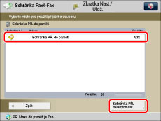 2 | [Rychlá volba] Po stisknutí tohoto tlačítka se zobrazí obrazovka pro ukládání/zadání tlačítek rychlé volby. Stiskněte [Na vzdál. adresář] chcete-li zadat místa určení uložená v tlačítkách na jeden dotek serverového stroje prostřednictvím přístupu z klientského stroje v síti. Další informace viz v části „Zadání míst určení z tlačítek volby na jeden dotek serverového stroje.“ |