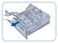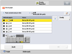 Postup pro ukládání papíru do POD Deck-D/Secondary POD Deck-D je stejný jako postup pro ukládání papíru do podstavců na papír hlavní jednotky. Jako příklad v této části uvádíme postup pro podstavce na papír hlavní jednotky. POD Deck-D/Secondary POD Deck-D jsou volitelné produkty. Velikost a typ papíru uloženého v zásuvce uložte v [Nastavení papíru] v [Možnosti] (Nastavení/Uložení). Můžete používat vlastní velikosti papíru. (Viz „Ukládání/úprava/mazání vlastních velikostí papíru.“) Můžete pojmenovat, uložit a upravit vlastní typy papíru. (Viz „Uložení vlastních typů papíru.“) Informace o papíru, který lze ukládat do stroje, viz v „Použitelný papír.“ Objeví-li se v průběhu tisku výzva k uložení papíru, tisk se po uložení správného typu papíru automaticky dokončí. Vyberete-li jiný zdroj papíru, zbývající výtisky se zhotoví po stisknutí [OK]. Stisknutím [Zrušit] zrušíte tisk. Chcete-li použít jinou dostupnou funkci, stiskněte [Další funkce] → vyberte požadovanou funkci → stiskněte [Hotov]. Jestliže jste do podstavce na papír ukládali běžný papír a poté chcete začít ukládat potažený papír, může se stát, že budete muset chvíli čekat, protože je nutné seřídit teplotu teplého vzduchu, který rozfoukává papír. |
