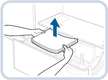 Pro zhotovení vysoce kvalitních výtisků používejte papír doporučený společností Canon. Papíry před uložením několikrát prolistuje a pak zarovnejte jejich okraje. Usnadní se tím jejich podávání. Papír nově vyjmutý z obalu by měl být prolistován jako sada. U sady dlouhého papíru vytvořte šikmý úhel přidržením obou konců. Poté listy dobře prolistujte z jedné strany, aby se dovnitř dostal vzduch. Po vyrovnání sady papíru stejným způsobem prolistujte protilehlou stranou. Pokud je několik listů slepeno, opatrně je oddělte jeden po druhém. ![]() |