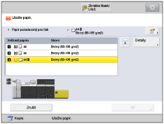 Objeví-li se v průběhu tisku výzva k uložení papíru, tisk se po uložení správného typu papíru automaticky dokončí. Vyberete-li jiný zdroj papíru, zbývající výtisky se zhotoví po stisknutí [OK]. |