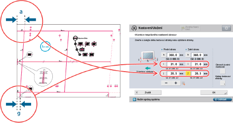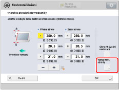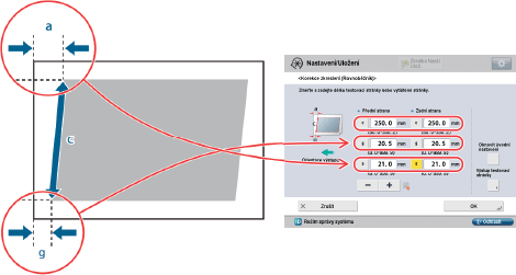 [A]: | Zadejte změřenou vzdálenost od pravé strany zaváděcího okraje tiskové oblasti k zaváděcímu okraji výstupního papíru. |