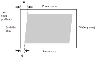 Toto nastavení umožňuje korekci tvaru obrazu vyrovnáním vzdálenosti od „a“ a „g“ k zaváděcímu okraji papíru v případě, že se obraz vytiskne jako kosoúhelník.