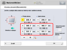 [H]: | Zadejte změřenou vzdálenost od levé strany zaváděcího okraje tiskové oblasti k levé straně vlečeného okraje tiskové oblasti. |