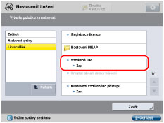 Stiskněte [Nastavení správy] → [Licence/Jiné] → [Vzdálené UR].