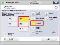 PDF (Kompakt) nebo XPS (Kompakt) lze použít pouze s následujícím nastavením: Vybrat barvu: Auto (Barvy/Šedá), Plné barvy, Odstíny šedé Rozlišení: 300 x 300 dpi Poměr kopírování: 100 % nebo Auto |
