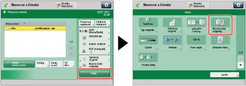 Nastavíte-li velikost skenování na jinou hodnotu než [Auto], naskenují se všechny originály v zadané velikosti. Chcete-li skenovat jednotlivé originály v jejich původních velikostech, v každém případě nastavte velikost skenování na [Auto]. Chcete-li uložit originály různých velikostí do podavače, ujistěte se, že mají stejnou hmotnost (typ papíru). Nastavíte-li režim Různě velké originály, rychlost skenování se může oproti běžnému stavu snížit. |