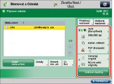 Nastavení odesílání pro poslední úlohu odesílání mohou zůstat zachována. Chcete-li nastavení zrušit, stiskněte .Zadaná místa určení nezůstávají zachována. |