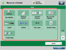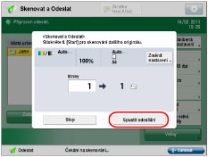 Po odeslání úlohy mohou nastavení odeslání zůstat zachována s výjimkou zadaných míst určení. Chcete-li nastavení zrušit, stiskněte .Chcete-li odeslat jiné úlohy se stejným nastavením, zadejte pro úlohy místa určení, protože místo určení zadané pro předchozí úlohu nezůstává zachováno. |