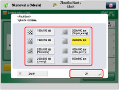 → [Skenovat a Odeslat] → zadejte místo určení → stiskněte tlačítko rozlišení.