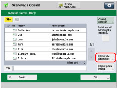 Stisknete-li [Spustit hledání], aniž byste zadali kritérium hledání, zobrazí se všechny adresy uložené na serveru LDAP. |