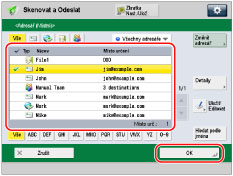 (číselných tlačítek). Stisknete-li [Adresy bez přístupového čísla], zobrazí se místa určení, která nejsou spravovaná s nastavením přístupového čísla.POZNÁMKA |