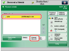 Před skenováním dokumentů můžete zkontrolovat, upravit nebo smazat zadané místo určení.