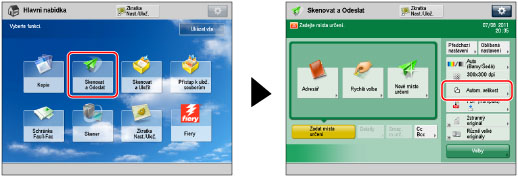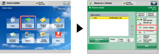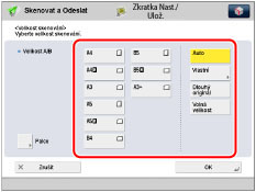 → [Skenovat a Odeslat] → zadejte místo určení → stiskněte tlačítko velikosti skenování.