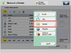 Stisknete-li tlačítka jako [ABC], [DEF] a [GHI] na obrazovce adresáře, použije se prvně zadaný znak jména k vyhledávání v seznamu míst určení. Stisknete-li tlačítko [Hledat podle jména] na obrazovce adresáře, zobrazí se obrazovka pro zpřesnění vyhledávání v adresáři. |