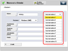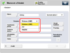 Příklady nastavení, která jsou nutná k odeslání dokumentů na souborový server, najdete v příručce k imagePRESS Server. UPN (User Principal Name) lze použít pouze tehdy, odesíláte-li na počítač patřící doméně obsluhované službou Active Directory. |