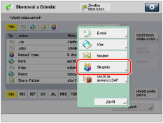 → [Skenovat a Odeslat] → [Adresář].