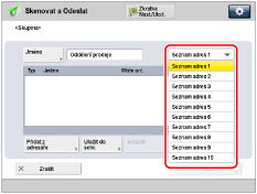 Stiskněte rozevírací seznam → vyberte seznam adres ze Seznamu adres 1 až 10.
