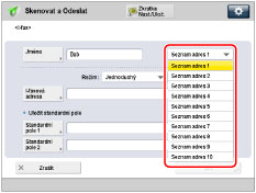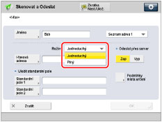 V případě, že dokumenty neodesíláte přes server a na serveru DNS není registrována IP adresa příjemce, zadejte jméno domény v tomto formátu: (uživatel)@(IP adresa příjemce). |