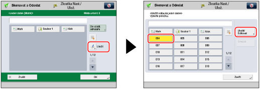 Stiskněte [Uložit] → vyberte tlačítko volby na jeden dotek, které chcete uložit nebo změnit → stiskněte [Uložit/Editovat].