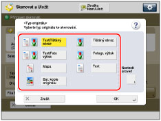 Režim Text/Tištěný obraz | Režim Text/Fotografický výtisk | Režim Mapa | Režim Barevná kopie originálu | Režim Tištěný obraz | Režim Fotografický výtisk | Režim Text |