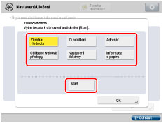 Neprovedete-li obnovení dat pro [Hodnota Nast./Ulož.] a [Adresář] současně, může se stát, že se nastavení v [Nastav. odes.URL] pro [Nastavit fax./I-fax. schránku] a [Nastavení schránky] smažou. |