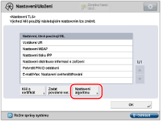 Po kontrole funkce, pro kterou jsou používány šifrované komunikace TLS, můžete nastavit používaný pár klíčů.