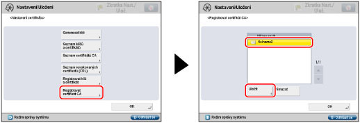 Stiskněte [Seznam certifikátů CA] → postupujte níže uvedeným způsobem.