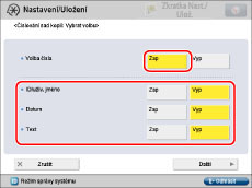 Nechcete-li zadat nastavení volby číslování sad kopií, stiskněte [Vyp].