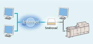 Je-li tiskárně/multifunkčnímu stroji přiřazena globální IP adresa, v zájmu omezení rizika neoprávněného přístupu můžete vytvořit síťové prostředí, a to nainstalováním bezpečnostního softwaru, jako je například firewall, který zabraňuje přístupu z externích sítí. Chcete-li tiskárně/multifunkčnímu stroji přiřadit globální IP adresu a používat je, obraťte se na správce sítě. |