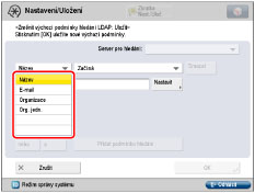Tato funkce umožňuje vyhledávání míst určení na serveru LDAP, aniž byste museli pokaždé nastavovat podmínky hledání.
